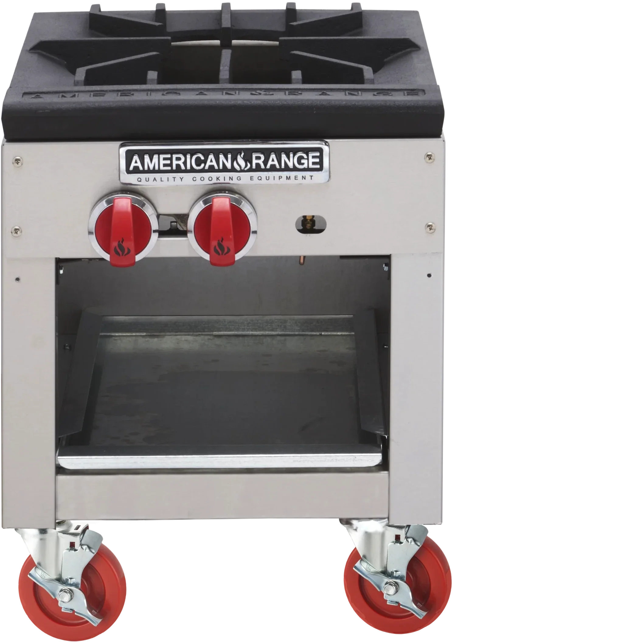 The American Range 18" Stainless Steel Natural Gas Economy Style Stock Pot Stoves, a powerhouse addition to any commercial kitchen. well-suited to large-scale cooking operations, its spacious design accommodates oversized stock pots, making it reliable for preparing soups, stews, sauces, and more. Designed with both efficiency as well as durability in mind, this stove highlights a robust 18-inch stainless steel construction that promises longevity and resilience in high-demand environments. The natural gas functionality helps deliver consistent and powerful heat distribution, enhancing cooking performance and energy efficiency. With user-friendly controls and a sleek, professional appearance, the American Range stock pot stove is a durable, heavy-duty solution for transporting packages, supplies, and equipment. Designed for demanding environments, it has a chrome finish for added durability and corrosion resistance. Ideal for use in commercial and industrial settings.