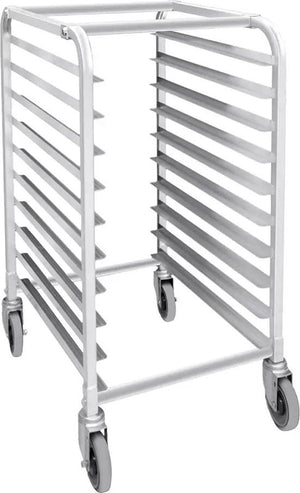 Elevate your kitchen organization as well as streamline your bakery or restaurant operations with the Browne Foodservice 10 Tier Aluminum Bun Pan Rack - Model 589110. Crafted from lightweight yet incredibly long-lasting aluminum, this 10-tier bun pan rack combines versatility, durability, and convenience into one remarkable package. This exceptional piece of equipment has been meticulously designed to be the cornerstone of efficient storage and transportation for your baked goods.