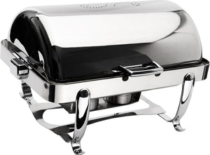 - Fully Retractable Roll Top Lid : This chafer is equipped with a fully retractable roll top cover that opens smoothly to a 180° angle, allowing for easy access from both sides of the table. The cover has a built-in stop at 140° for single-side serving, making it convenient for service staff to manage.