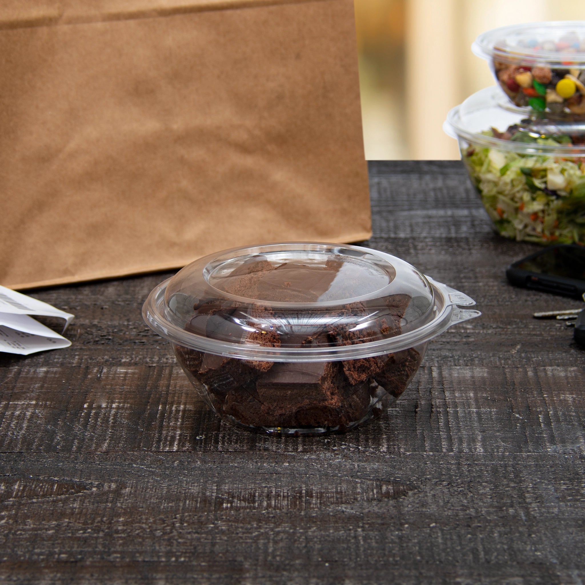 Ensure the safety and freshness of your food with the Dart Container - 24 Oz Plastic Tamper-Resistant, Tamper-Evident Bowl with Dome Lid, Pack of 240. Designed with both consumers and businesses in mind, these containers offer a secure and reliable solution for packaging. The tamper-resistant, tamper-evident design guarantees that your food remains untouched and uncontaminated, providing peace of mind for your customers. Perfect for takeout, delivery, or meal prep, these bowls are versatile and durable, ideal for holding salads, soups, and other culinary delights.