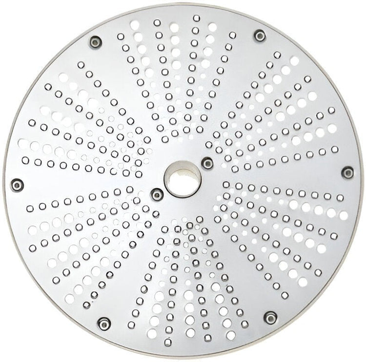 The DITO SAMA Stainless Steel Grating Disc is compatible with various food processing equipment, including cutter mixers and food processors, offering versatility and flexibility in kitchen operations. Its universal design allows it to be easily installed and secured onto compatible equipment, providing seamless integration into existing kitchen setups. In addition to its exceptional grating capabilities, this stainless steel grating disc is also designed for ease of use and maintenance. Its smooth and polished surface facilitates effortless grating and ensures easy cleaning after use. Simply rinse the disc with water or use a mild detergent to remove any food residue, maintaining hygiene and sanitation standards in the kitchen. Furthermore, the grating disc is designed with safety in mind, featuring smooth edges and a secure locking mechanism to prevent accidents or injuries during operation. This ensures peace of mind for kitchen staff and allows them to focus on food preparation tasks without worrying about safety hazards.