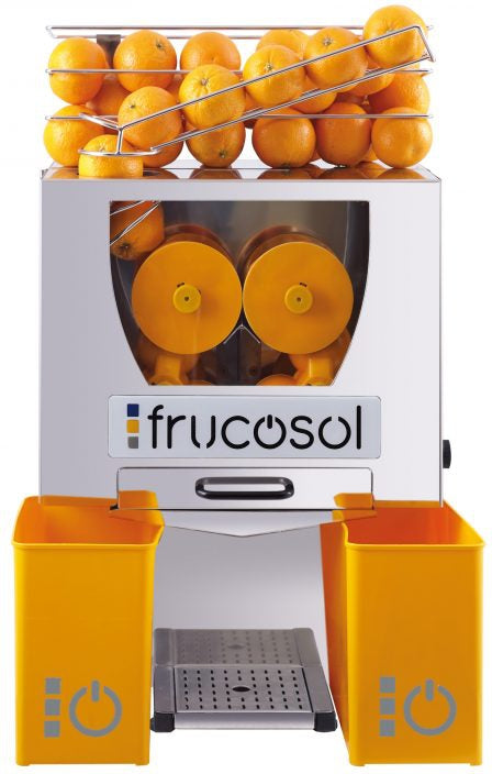 This automatic juicer offers a manual feeding system as well as is specifically designed to provide fresh orange juice to your customers. The Frucosol F50 is well-suited to a wide range of establishments, including restaurants, cafes, coffee shops, juice bars, hotels, fast-food outlets, bars, bakeries, and more. Its controlled pressure squeezing process helps deliver that the juice extracted doesn't carry the bitter taste from the peels, resulting in a delightful and refreshing beverage. If your business requires the preparation of more than 30 juices daily, this juicer is the reliable fit.