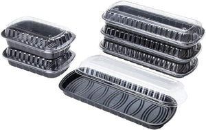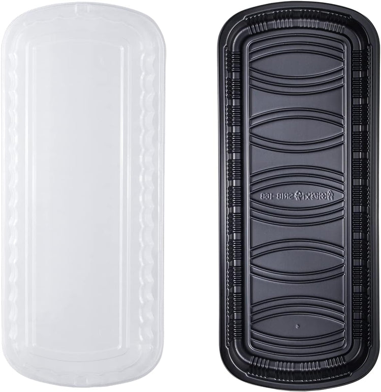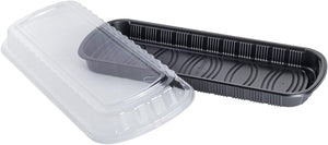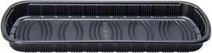 This Karat black full slab rib container is designed for both durability and style, ideal for packaging full slabs of ribs and other large food items. Crafted from polypropylene (PP), the container is both sturdy and resistant to high temperatures, making it perfect for hot foods. Its clear OPS lid ensures visibility while providing a secure seal for freshness. Ideal for restaurants, food trucks, and catering services.
