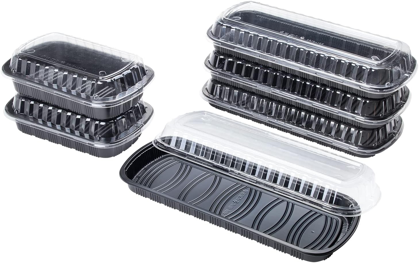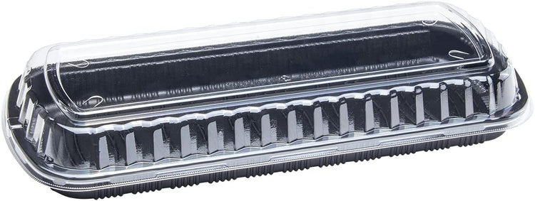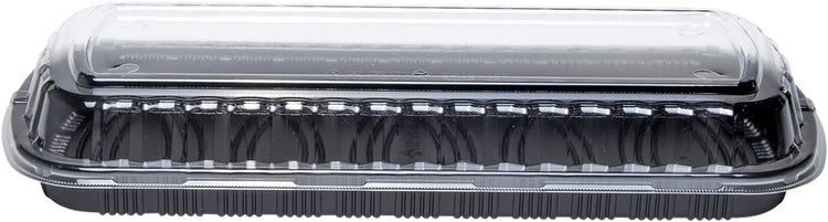 Karat - 16.1” x 6.6” x 2.8” PP Black Full Slab Rib Container with Clear OPS Lid, 100/cs, 20/sk - KARFPRFULL