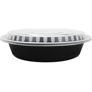 Karat - 9", 48 Oz Polypropylene Black Base Round Container Combo with Clear Lid, Pack of 150 - KARIMFC4048B