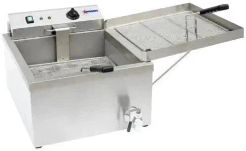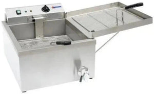 Elevate your commercial kitchen's frying capabilities with the Omcan 1.7 Kw Counter Top Electric Fryer, specially built for preparing delicious donuts as well as funnel cakes. Whether you’re cooking up fries, onion blossoms, crispy vegetables, or sweet funnel cakes, this fryer delivers exceptional results every time. This versatile fryer boasts a generous oil capacity of 3 gallons (11.3 kg), making it well-suited to high-demand settings where consistent, quality frying is a must. Its compact, lightweight design helps deliver portability and ease of setup, allowing you to bring your frying station to any venue with minimal effort. Operating at 1,700 watts of power and offering a wide temperature range from 200°F to 370°F (93°C to 188°C), this fryer provides precise control over your frying process, ensuring neatly golden results. The spacious cooking area and convenient screen dimensions allow for efficient frying of multiple items at once, making this fryer a valuable asset to any foodservice operation.