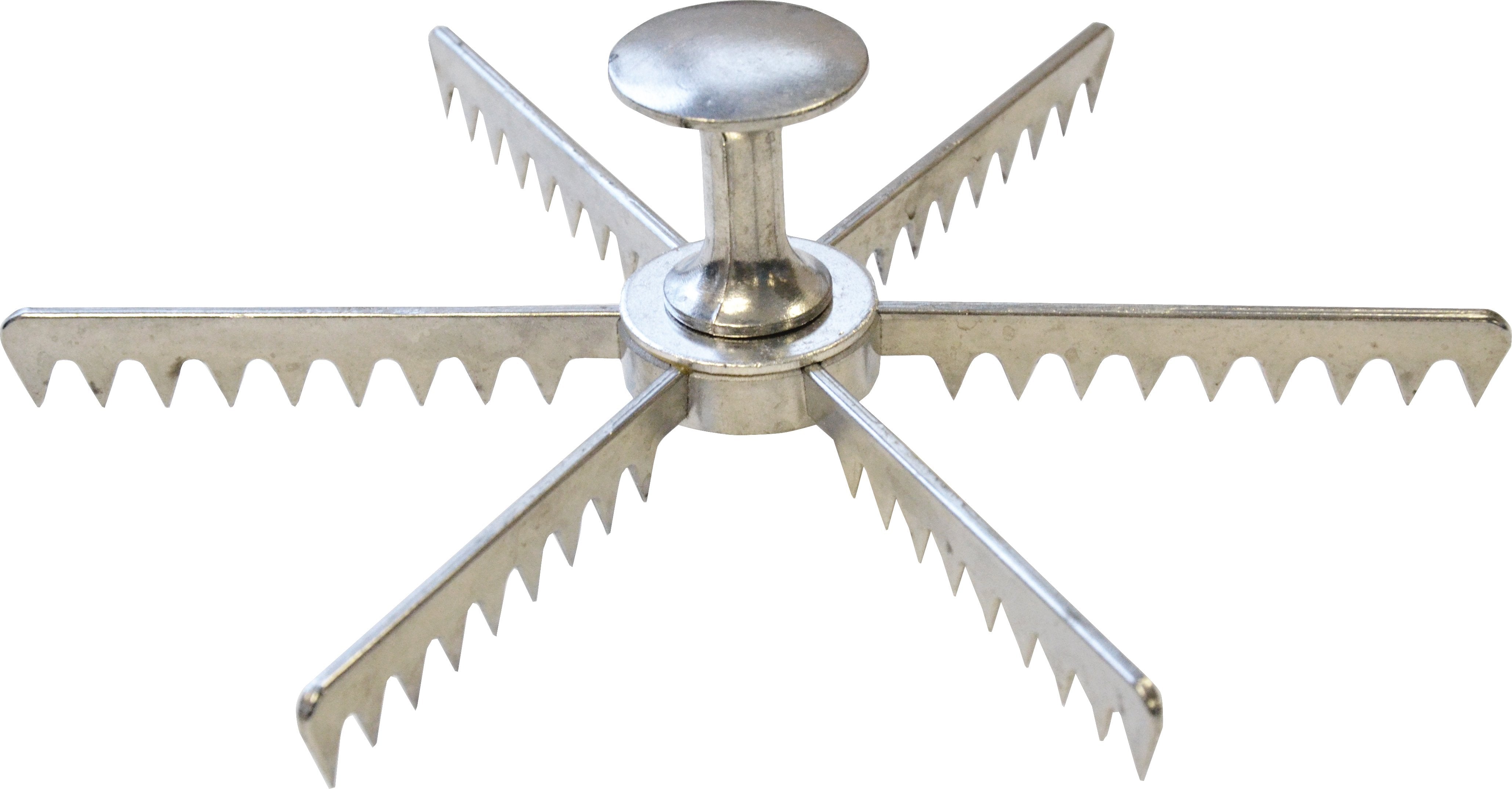 A neatly-sliced cake or pie shows the professionalism of your restaurant. It help to help deliver that you deliver the same portion of cake and pie every time. Our aluminum slice pie marker helps you to evenly mark your pies as well as cakes. It highlights 9-teeth on each arm and a removable knob for easy cleaning and space-efficient storage. This marker is also great for quiche, pot pies etc.