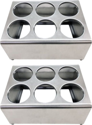 Omcan - Stainless Steel 2 Tier Flatware Cylinder Holder with 6 Holes, Pack of 2 - 80817