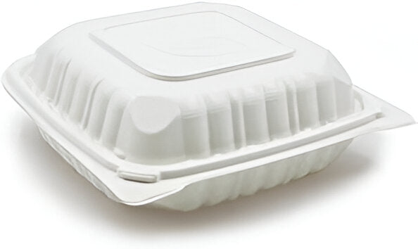 PCMPAK - 8" x 8" White MFPP Microwavable Hinged Lid Container with 1 Compartment, Pack of 180 - PCMSL81W