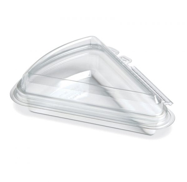 Give your customers the ultimate experience with this tamper evident tamper resistant recycled PET 6" single slice pie container. This container and lid will be an added convenience for your customers, allowing them to take your baked creations with them wherever they go! The tight-fitting lid ensures each container is leak resistant while creating a water vapor barrier to ensure long shelf life for all of your pies or cakes. Also, the high clarity material makes for accurate identification of the contents. Should this container sit on the shelf for an extended period of time, the plastic construction won't break down even if it's in contact with oils, icings, and pie fillings. Thanks to the tamper-evident design, you can feel confident placing these containers in areas where customers can grab and go. To use, simply package your prepared foods and place the attached lid over the top of the container. Press down firmly to create a tight seal. Now the container cannot be opened without breaking the lock tabs, which prevents tampering before the product has been purchased. If the seal does become broken, it will be easy to spot and remove. Not only does this container protect your merchandise, but your customers will appreciate knowing their purchase is fresh and tightly sealed. EcoStar is a food grade post-consumer recycled PET material that is made from curbside-collected bottles and thermoforms and is 100% recyclable. This eco-friendly container conserves natural resources, and your purchase will help to sustain the environment for future generations.