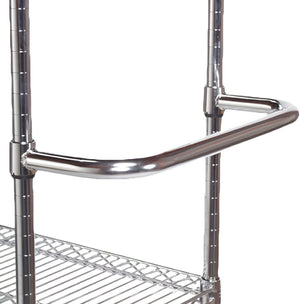 The Tarrison 14" Safety Push Handle is a durable, heavy-duty solution for transporting packages, supplies, and equipment. Designed for demanding environments, it has a chrome finish for added durability and corrosion resistance. Ideal for use in the cart width for added protection.