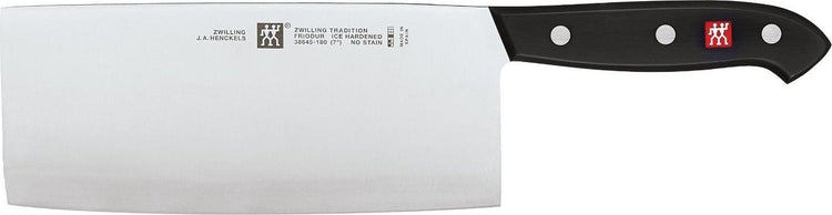 The ZWILLING Tradition 7" Meat Cleaver makes tough jobs easy. Chop roast chickens, a rack of ribs or stock bones cleanly as well as effortlessly with this heavy-duty cleaver.